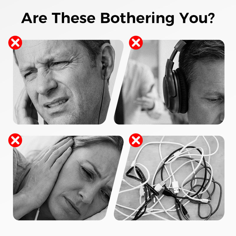 Package Includes: 1 * 2-in-1 Clip-On & In-Ear Wireless Earphones + Charging Case + Charging Cable