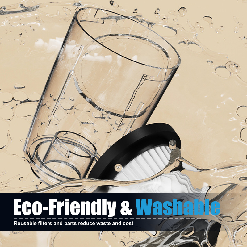 EASY MAINTENANCE & ECO-FRIENDLY - All filters and nozzles are washable and reusable, saving money and reducing waste. The 600ML dust cup minimizes emptying frequency, ensuring uninterrupted cleaning sessions.
