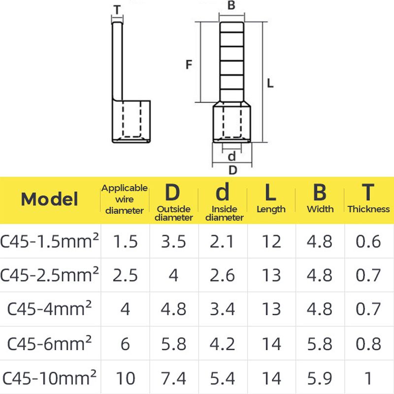 The wire terminals can load the bigger or the same current as the conducted wires, Wide compatibility with various wire types such as solid, and strand wire, fit for 1.5-10mm2 cable.