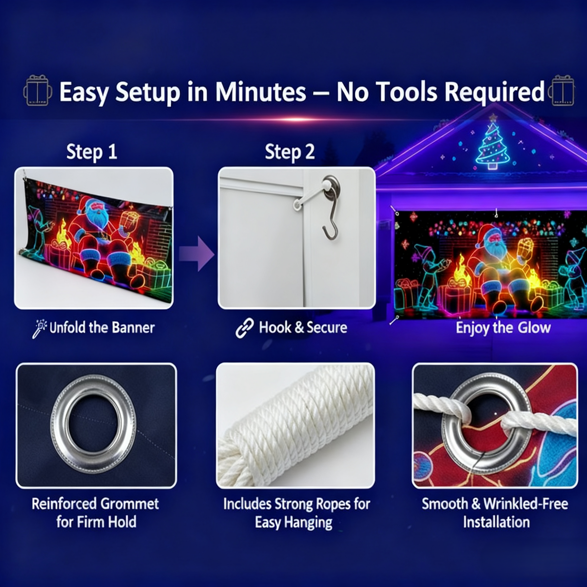 【Durable Material】: Crafted from robust polyester, this banner withstands various weather conditions, ensuring long-lasting holiday décor.