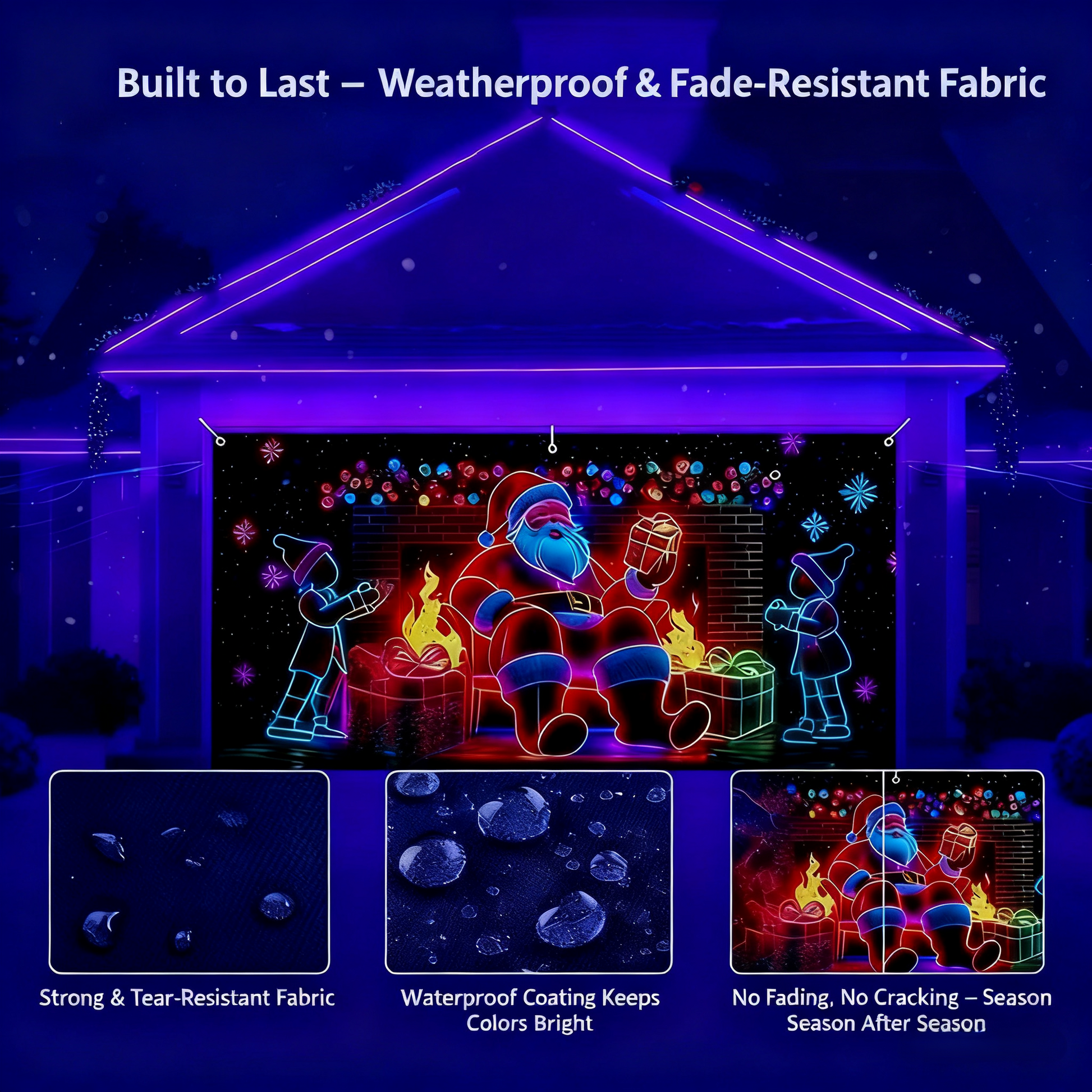 🎅 HOLIDAY HAUL SALE🎇🚪UV Activated Christmas Garage Door Cover Banner, Glows in Dark🔥🎉