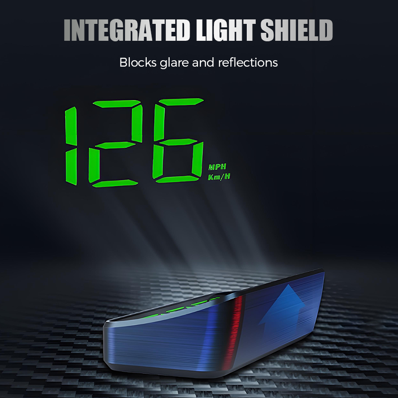 INTEGRATED LIGHT SHIELD - The thoughtfully designed built-in hood effectively blocks excess light and prevents distracting reflections on the windshield. This ensures the projected data remains sharp and easy to read in any lighting condition.