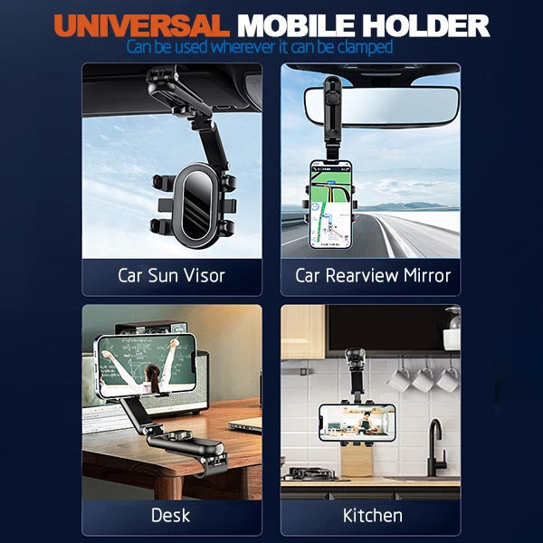 This multi-functional bracket works with car rearview mirrors, sunroofs, rear seats, kitchens, dining rooms, bedrooms, desktops – anywhere it can be clamped!