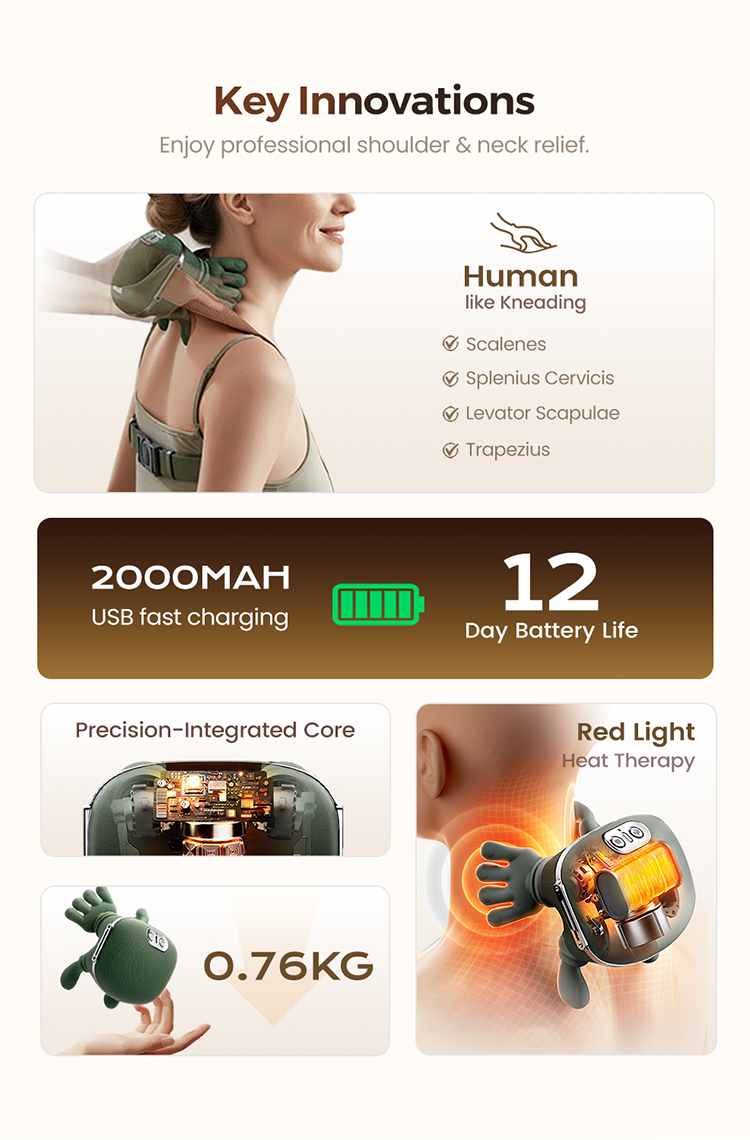 🏆2026 New Year Sale-50% OFF🎁3D Shiatsu Neck & Shoulder Massager with Soothing Heat - Deep Tissue Kneading for Back & Neck Pain Relief