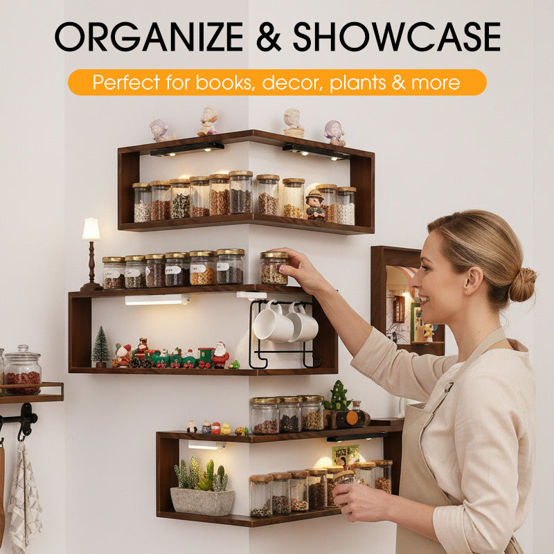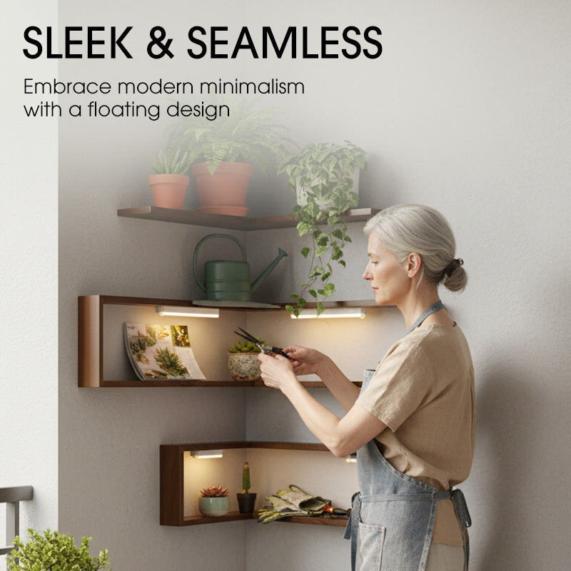 MAXIMIZE CORNER SPACE - Transform often-overlooked corners into functional and attractive areas. This clever design turns empty wall junctions into a perfect spot for your cherished collectibles, plants, or books, freeing up valuable floor space.