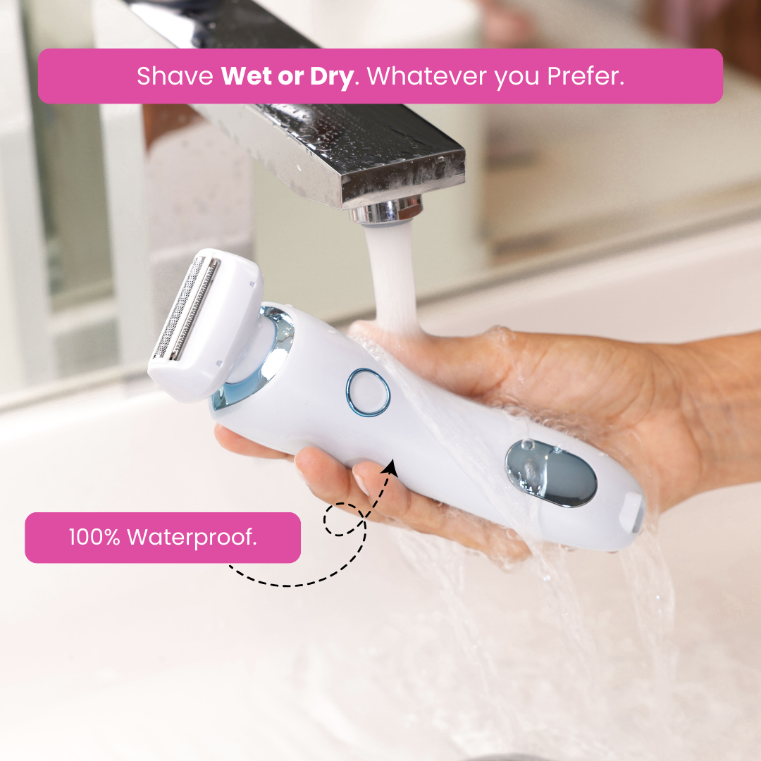 Solys is 100% waterproof. If you prefer to shave in the shower, no problem!