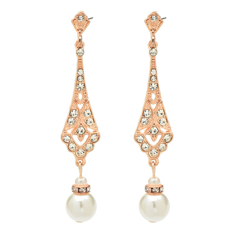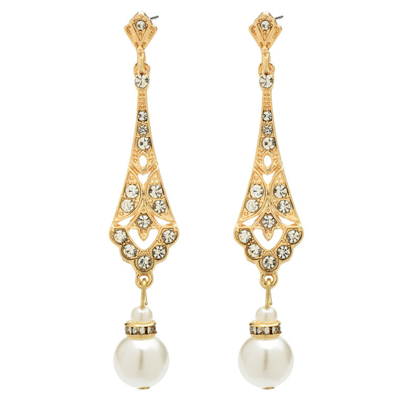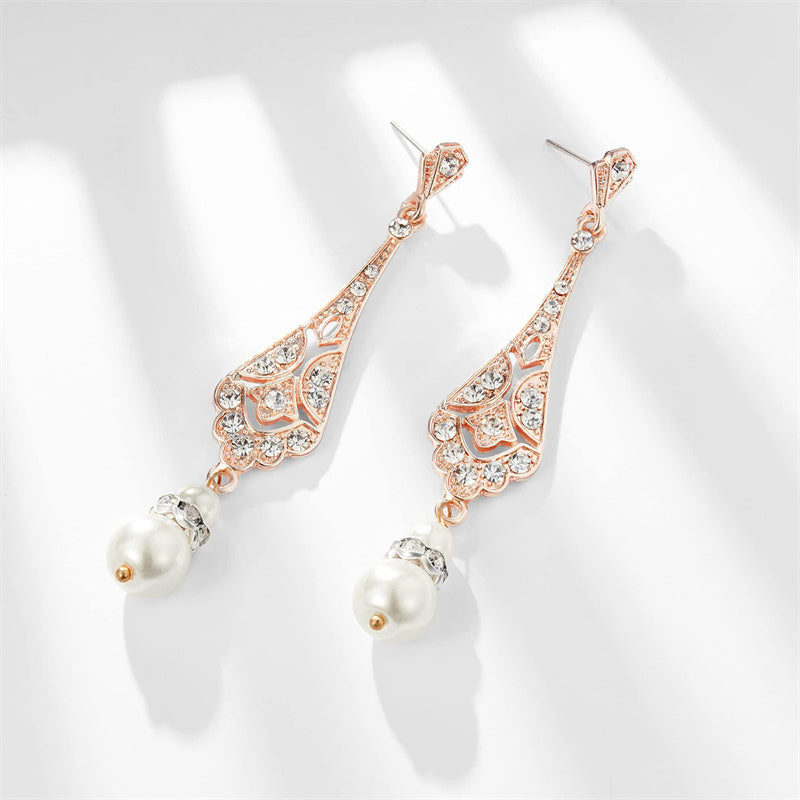 ELEGANT FAUX PEARL DROP - A classic imitation pearl dangles gracefully, providing a timeless touch of sophistication that beautifully complements both vintage-inspired gowns and contemporary formal wear for a polished finish.